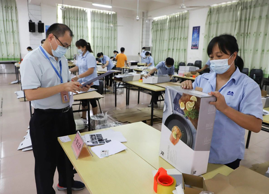 立即博集团业技能等级认定工作委员会副主任陈永锦表示,在坚持公正,公平,公开的原则,严格落实技能等级认定考试相关制度、工作流程及程序,本次认定考核,分为理论考试及技能实操考核,对应考查应考人员的专业知识和技能操作水平。在实操考核现场,小编看到考试区域摆放有已拆分的产品彩盒包装,应考人员需按照规定以及根据不同产品特性,快速整理进行包装。